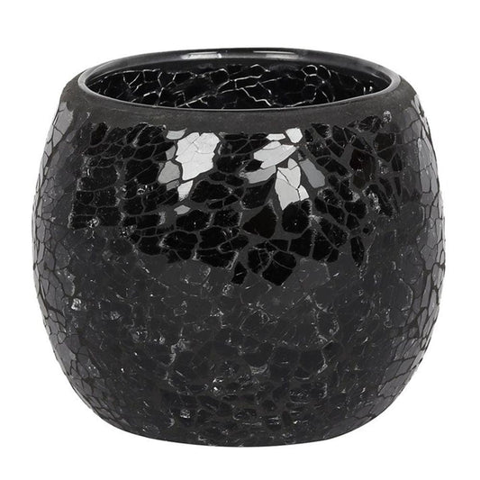Large Black Crackle Glass Candle Holder