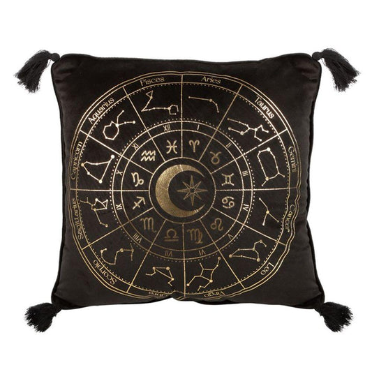 35cm Square Black Astrology Wheel Cushion