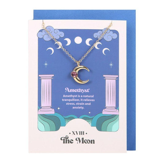 Rose Quartz Crystal Moon Necklace on Greeting Card