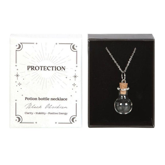 Protection Black Obsidian Crystal Chip Potion Bottle Necklace