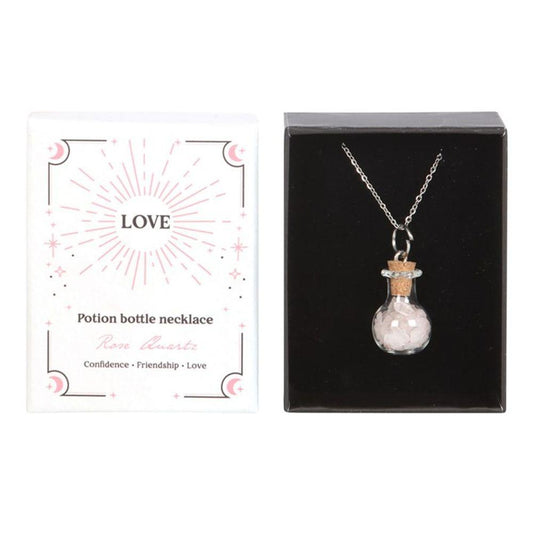 Love Rose Quartz Crystal Chip Potion Bottle Necklace