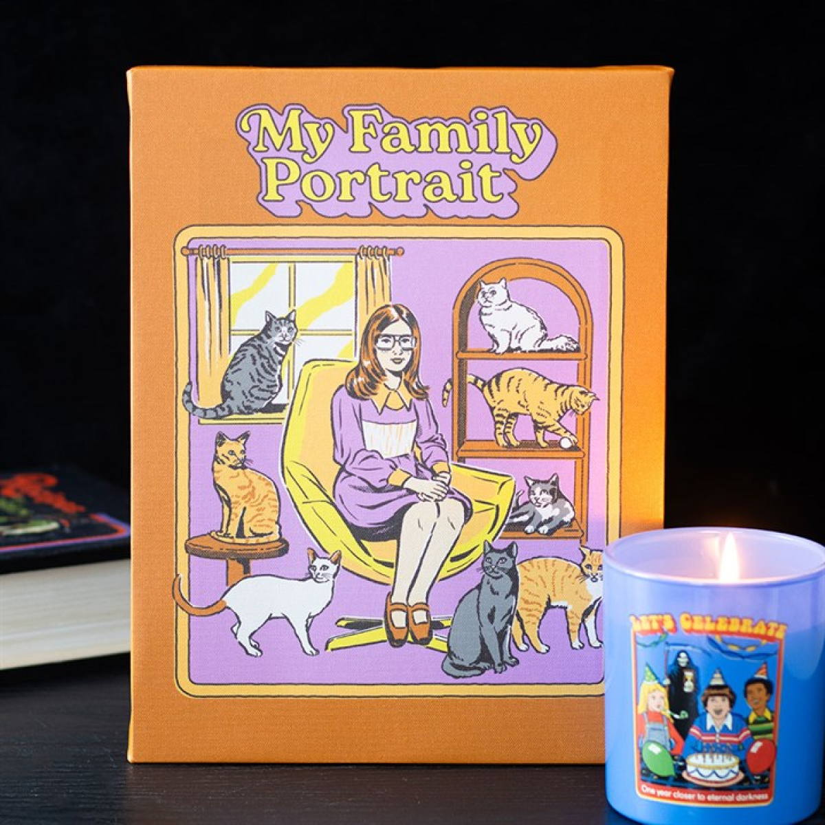 Skip the baby shower. You’ve got a living room full of fur, shredded curtains and silent looks of judgement. The My Family Portrait stretched canvas plaque by Steven Rhodes is what happens when the cat tree gets more use than the family tree. 19x25cm. Sawtooth hanger on reverse. Officially licensed and part of the Steven Rhodes collection of iconic retro gifts.