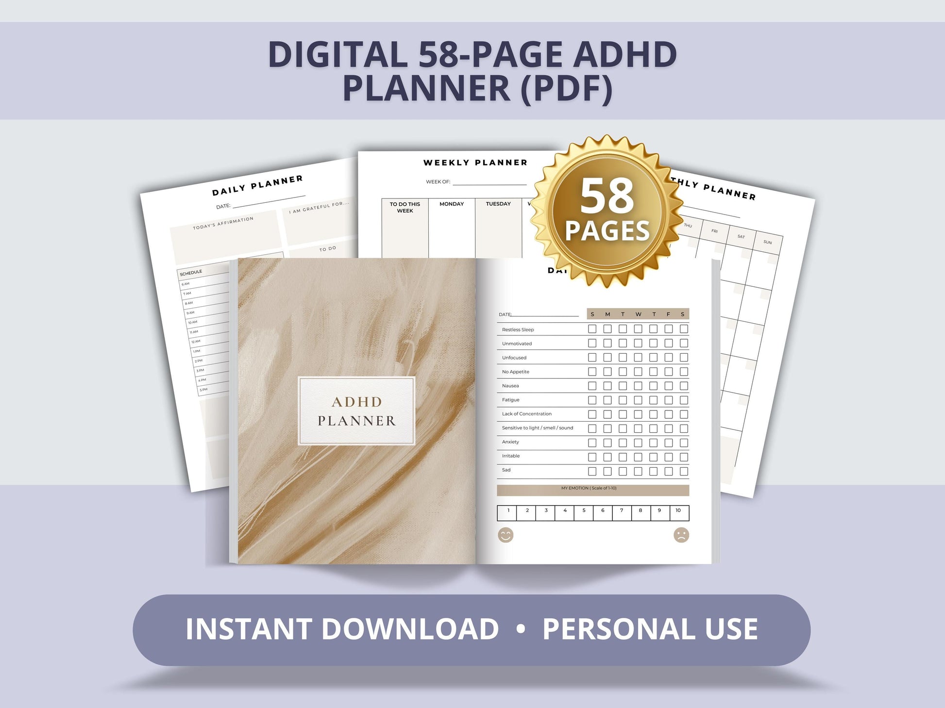 Support your mind and stay organised with this 58-page digital ADHD Planner. Created with neurodivergent needs in mind, it includes thought trackers, brain dumps, project and assignment planners, plus daily, weekly, and monthly layouts.