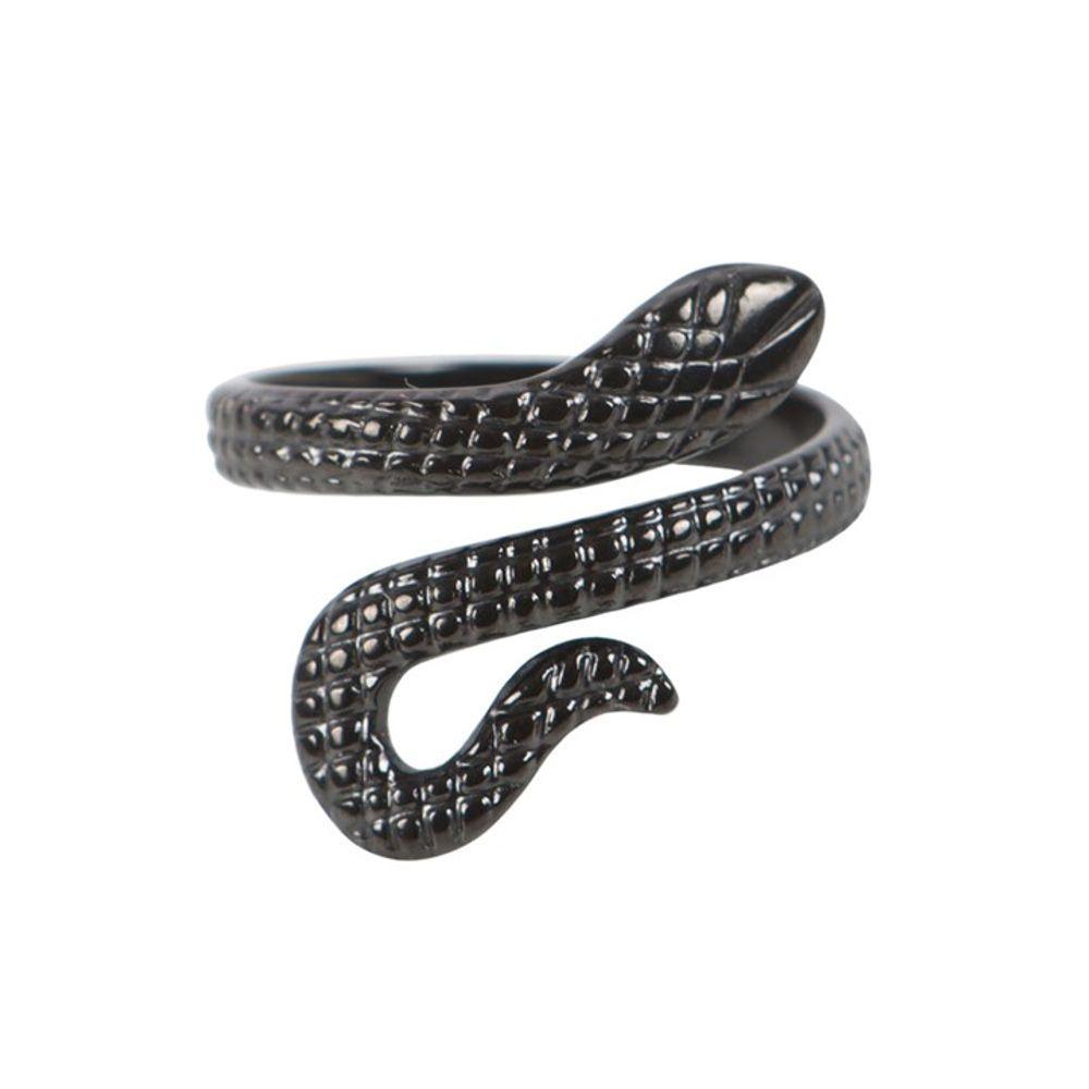 This dark and elegant ring features a delicate snake in a cool black finish.
