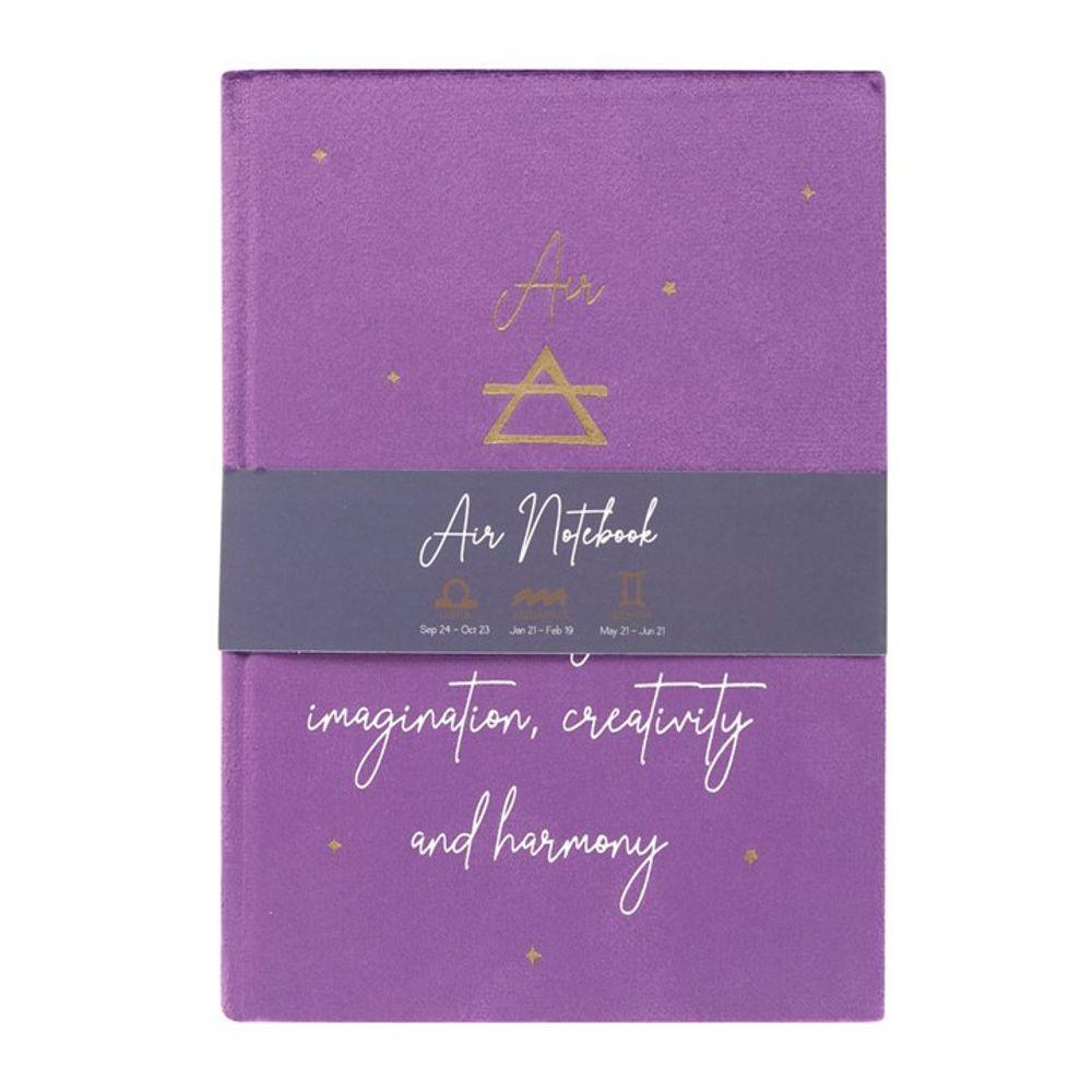 Gemini, Libra and Aquarius are the three zodiac signs represented by the air element. This purple velvet notebook features 'Knowledge, imagination, creativity and harmony' text on the front cover and a starry sky on the reverse, perfectly capturing the best traits of the zodiac air signs.