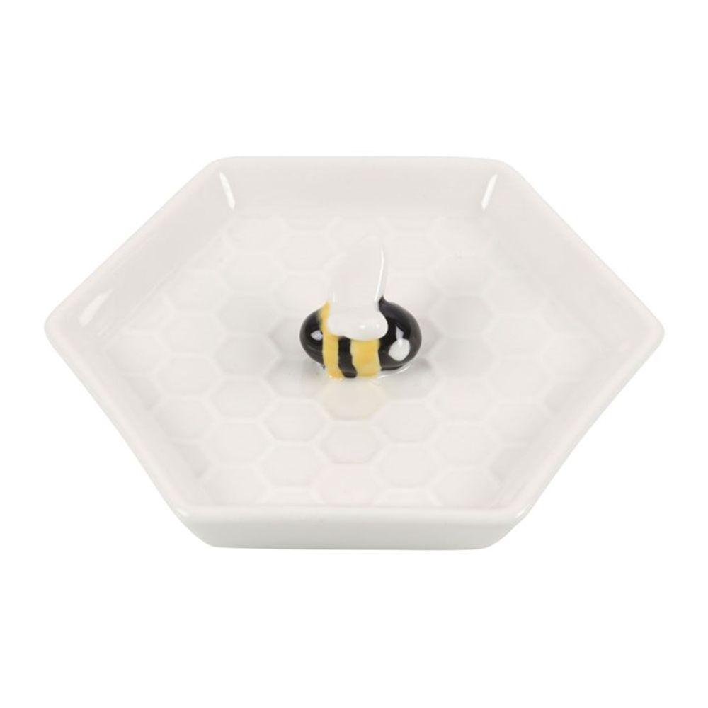 An adorable hexagon-shaped ceramic trinket dish with a 3D bee in the centre. Perfect for storing rings, earrings and other small and precious pieces. Product Dimensions: H2.5cm x W10.9cm x D10cm Packaged Dimensions: H2.5cm x W10.9cm x D10cm