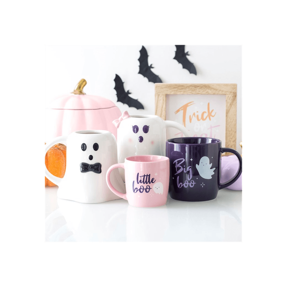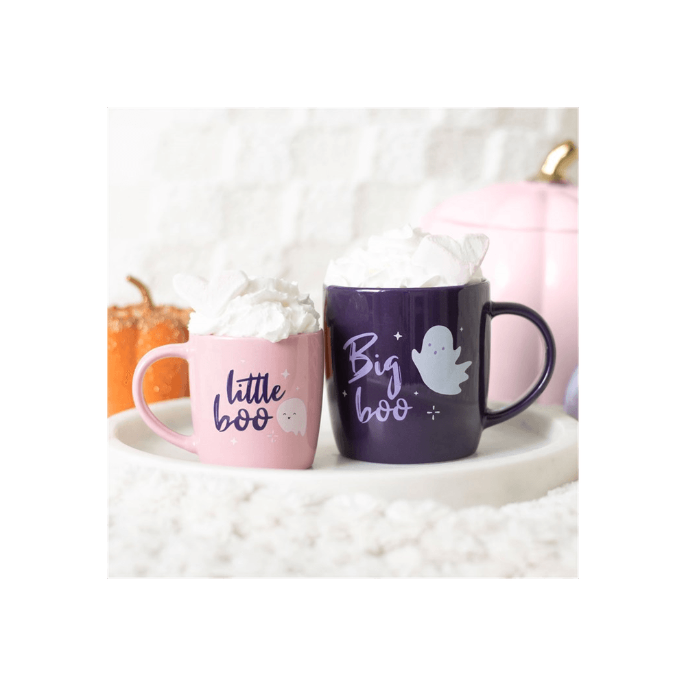 Halloween enthusiasts of all ages will delight in sipping spooky hot cocoa from these adorable, coordinated 'Big Boo' and 'Little Boo' ghost-themed mugs.