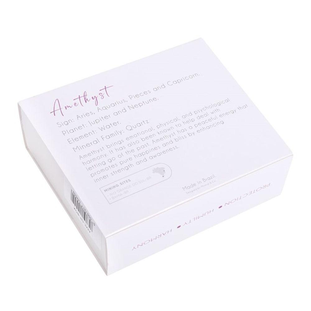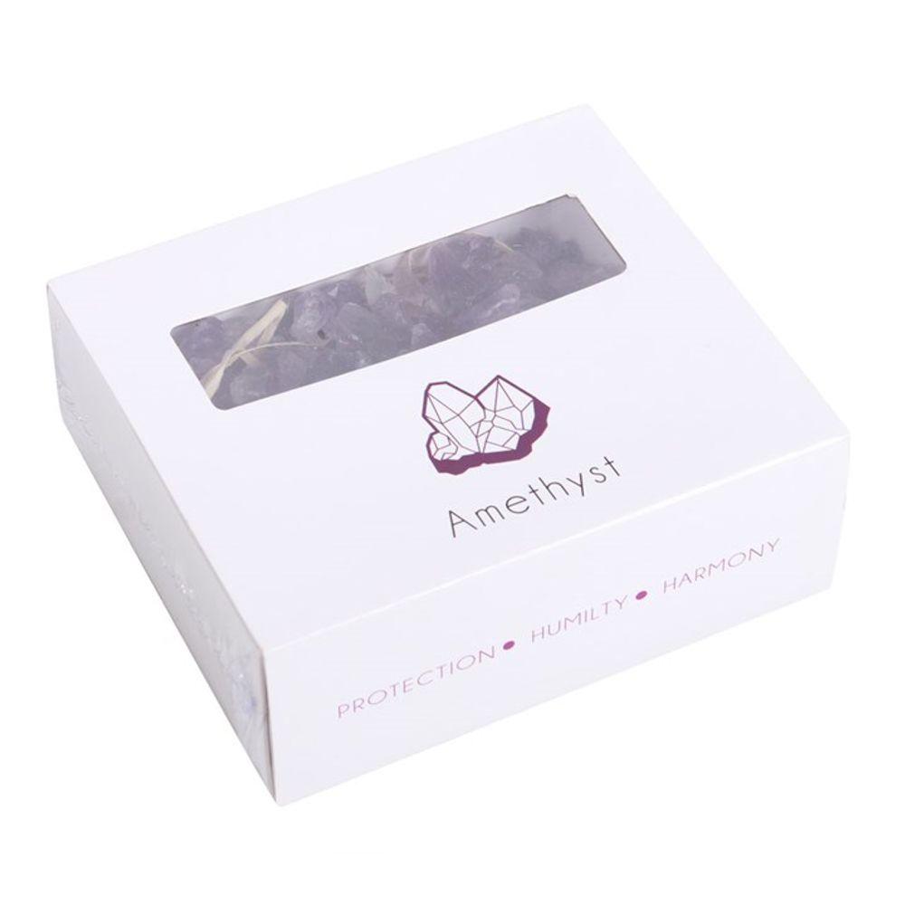 For centuries crystals have been used for a variety of purposes. From decoration and jewellery to healing, magic and for attracting positive energy. Amenthyst is a popular crystal with a deep purple colour. It is widely acknowledged as a protective stone which can help calm the mind and spirit, bringing emotional, physical and psychological harmony. Great for meditation the stone also enables restful sleep and reduces stress with it's calming and peaceful energy. Protection. Humility. Harmony Each box contains approximately 280g of loose Amenthyst rough crystal chips in various sizes. Mined in Brazil.