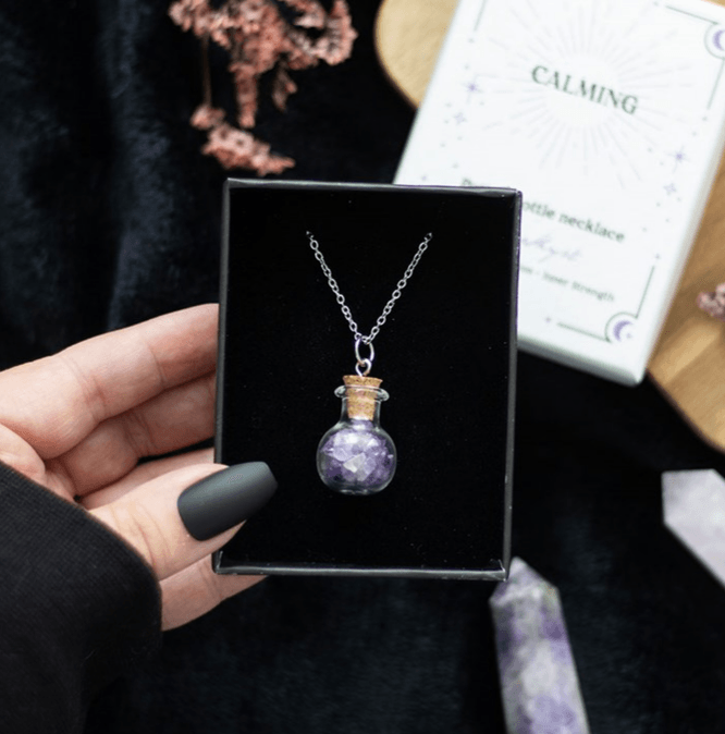 Calming Amethyst Crystal Chip Potion Bottle Necklace
