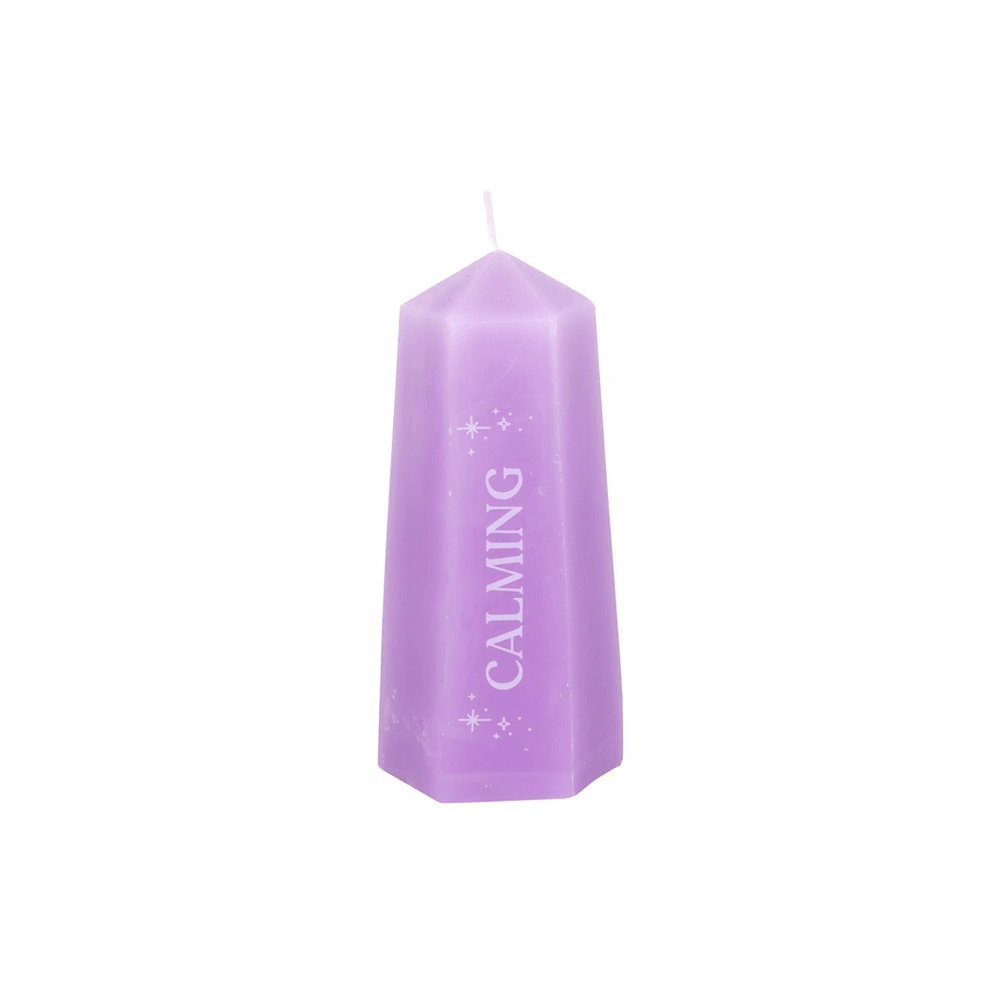 Calm the senses and promote inner strength with this Calming Crystal Candle. Shaped like a purple crystal tower, this candle offers up to 30 hours of burn time to gradually reveal a rough amethyst crystal hidden at the bottom.