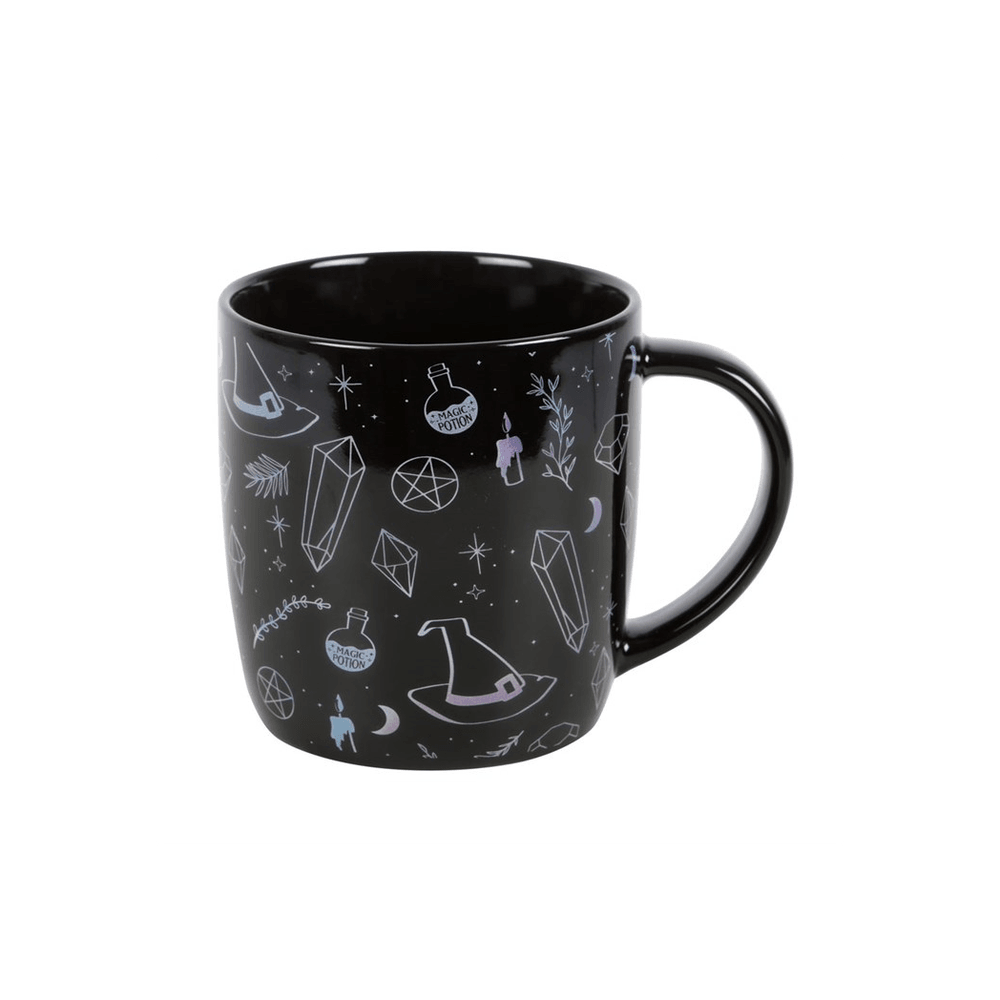 Feel magically restored after sipping your preferred potion from this enchanting mug featuring a captivating black crystal magic design. Perfect for any mystical gathering, it's sure to make every sip a spellbinding experience. Microwave safe. 360ml.