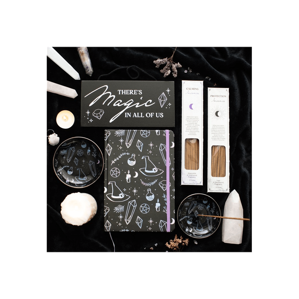 Store jewellery and other precious bits and bobs in this crystal witch design trinket dish. With iridescent illustrations on a black background, this piece is a pretty magical accessory for any living space.