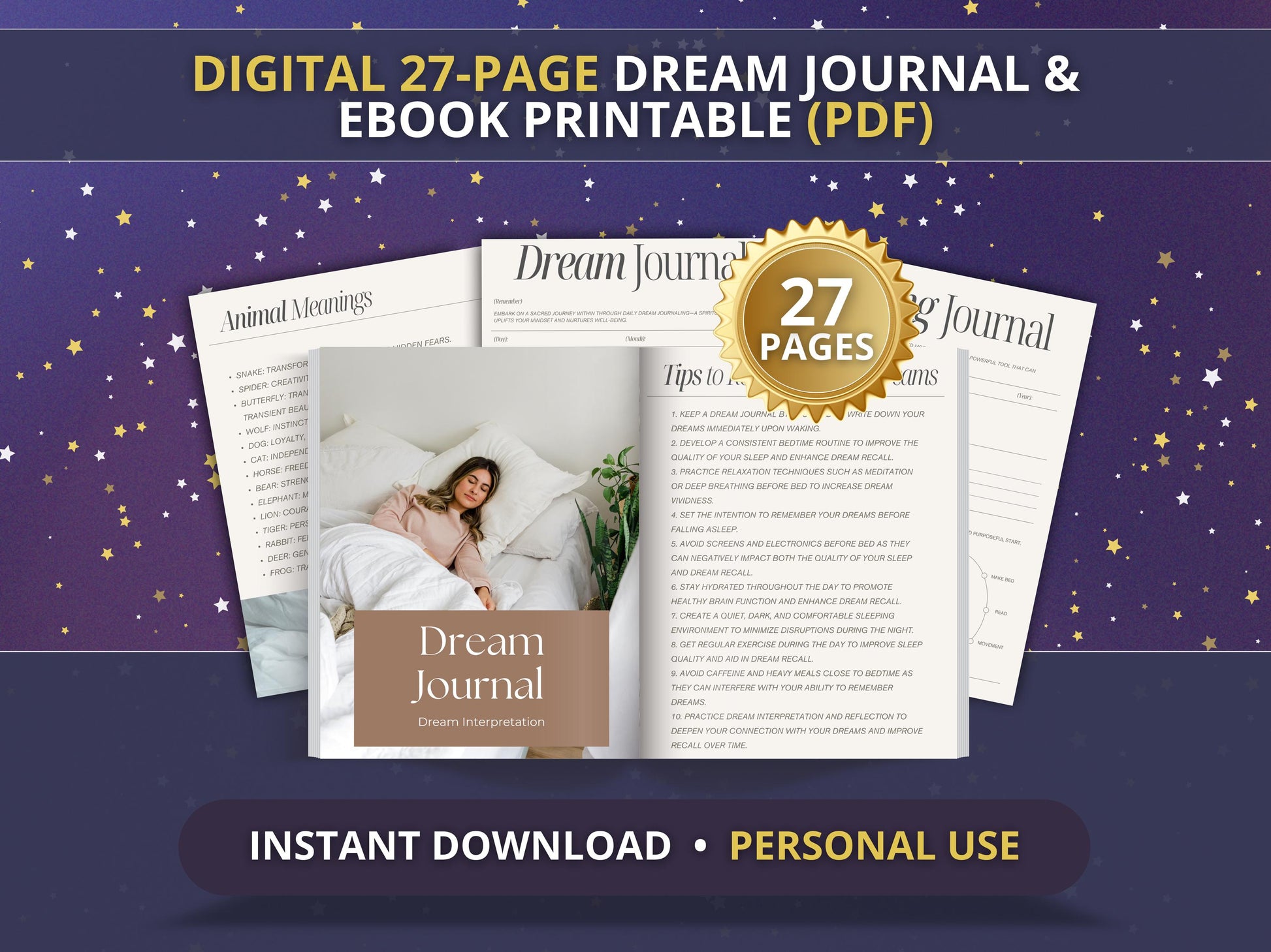 Unlock the messages in your dreams with this 27-page digital Dream Journal & eBook.