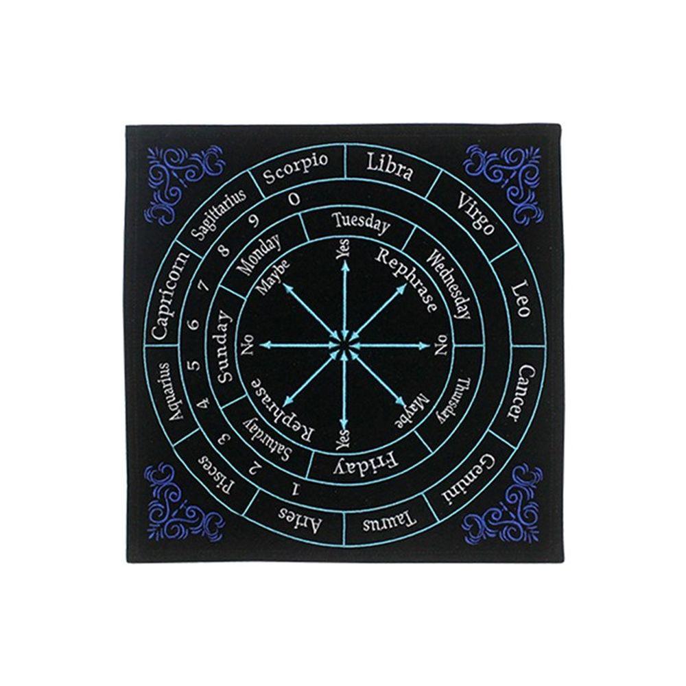 This 32cm astrology pendulum dowsing mat is embroidered with astrological signs, numbers, days of the week, and directional responses. Made of velvet fabric and easily folded for storage and portability. Makes a great tool for interpreting pendulum transmissions while scrying.