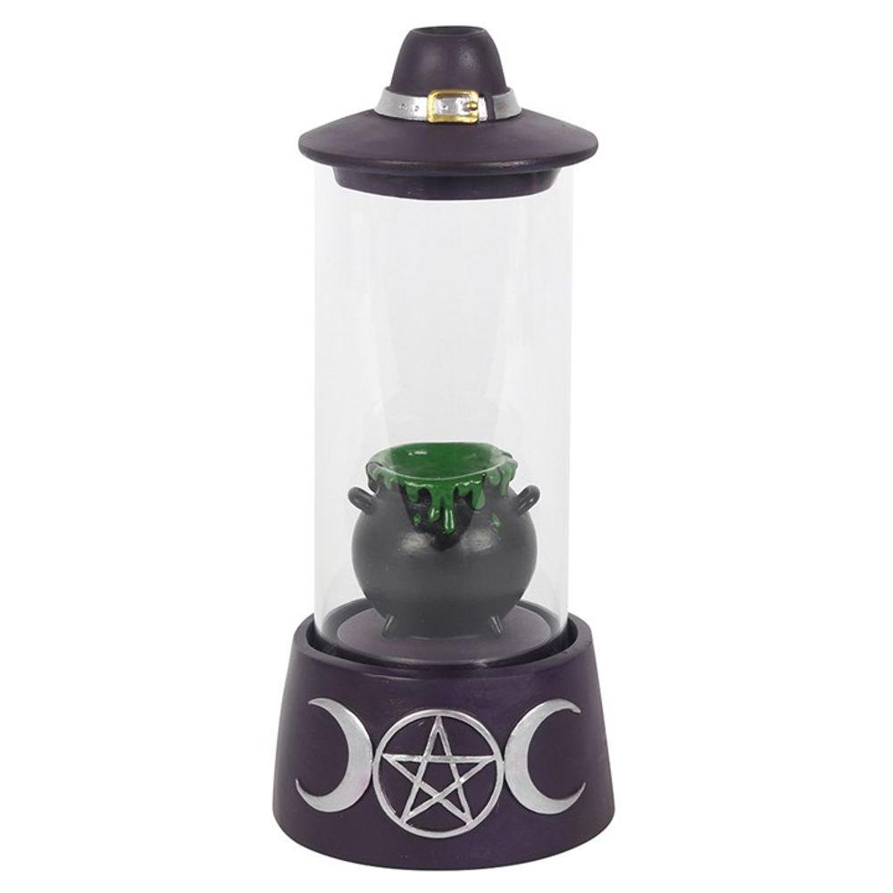 This impressive backflow cone burner is enclosed in a glass cylinder and features a bubbling cauldron, triple moon base and witch's hat lid. 4 LED lights gently cycle through a stunning rainbow of colours, beautifully showcasing the falling smoke that pools over the enclosed cauldron.