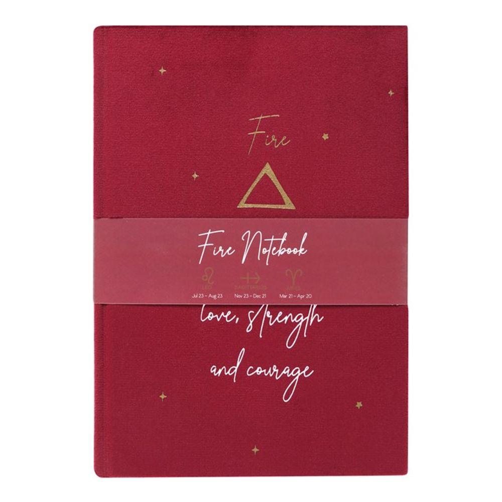 Aries, Leo and Sagittarius are the three zodiac signs represented by the fire element. This burgundy velvet notebook features 'Passion, freedom, love, strength and courage' text on the front cover and a starry sky on the reverse, perfectly capturing the best traits of the zodiac fire signs.