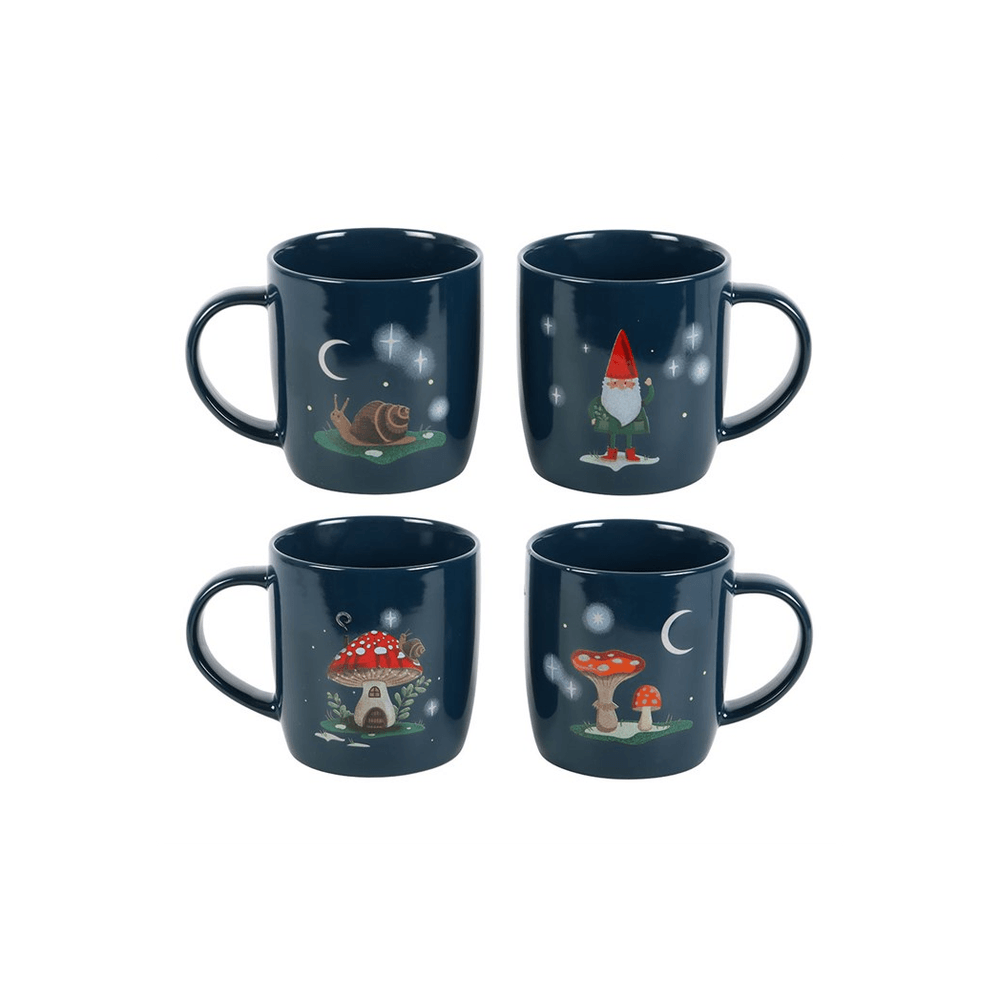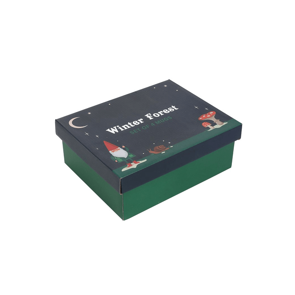 Featuring a different design inspired by a winter forest, including a snail, toadstools, a mushroom house and a gnome, each accented with moon and star details adding a touch of celestial wonder.