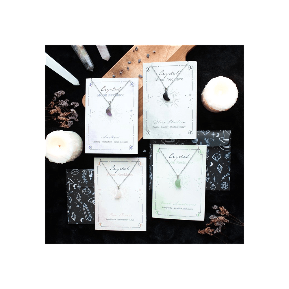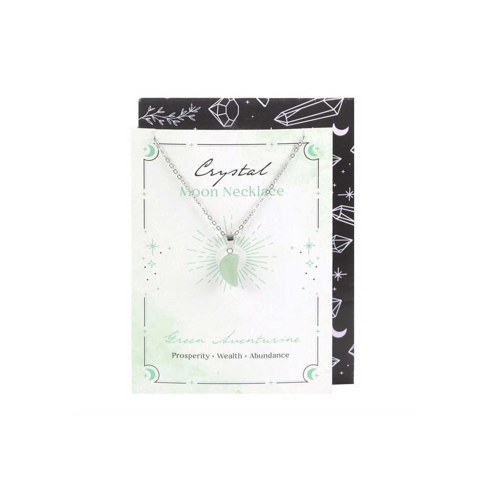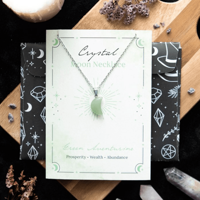 Green Aventurine Crystal Moon Necklace on Greeting Card