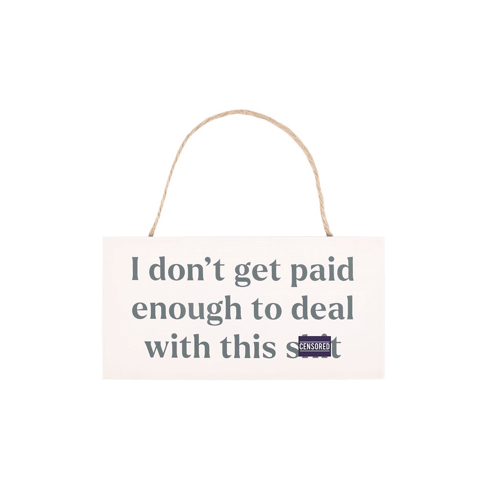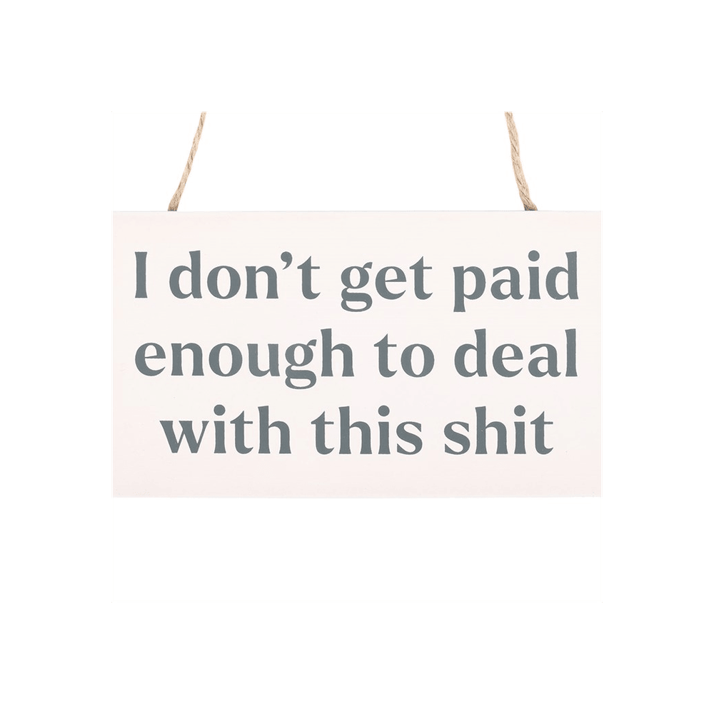 Get the message across with this cheeky hanging sign. Features "I don't get paid enough to deal with this sh*t" text for those with an offbeat sense of humour. Please note: This is a novelty gift intended for adults only.