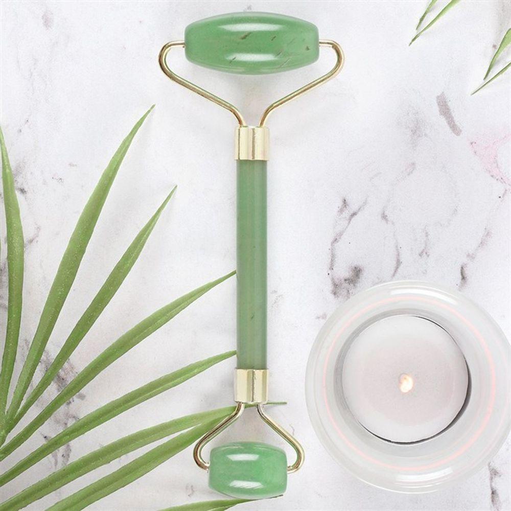 This highly anticipated Jade Face Roller is the latest trend in the beauty world. Created to decrease facial and under-eye puffiness, the cooling green stone resembles a mini paint roller and is a gentle, relaxing tool for facial massage. Jade has been used for centuries to assist in emotional healing. It is said to eliminate negative energy and is used to treat stress and anxiety. Suitable for all skin types. Product Dimensions: H15cm x W6cm x D2.5cm Packaged Dimensions: H21cm x W8cm x D3cm
