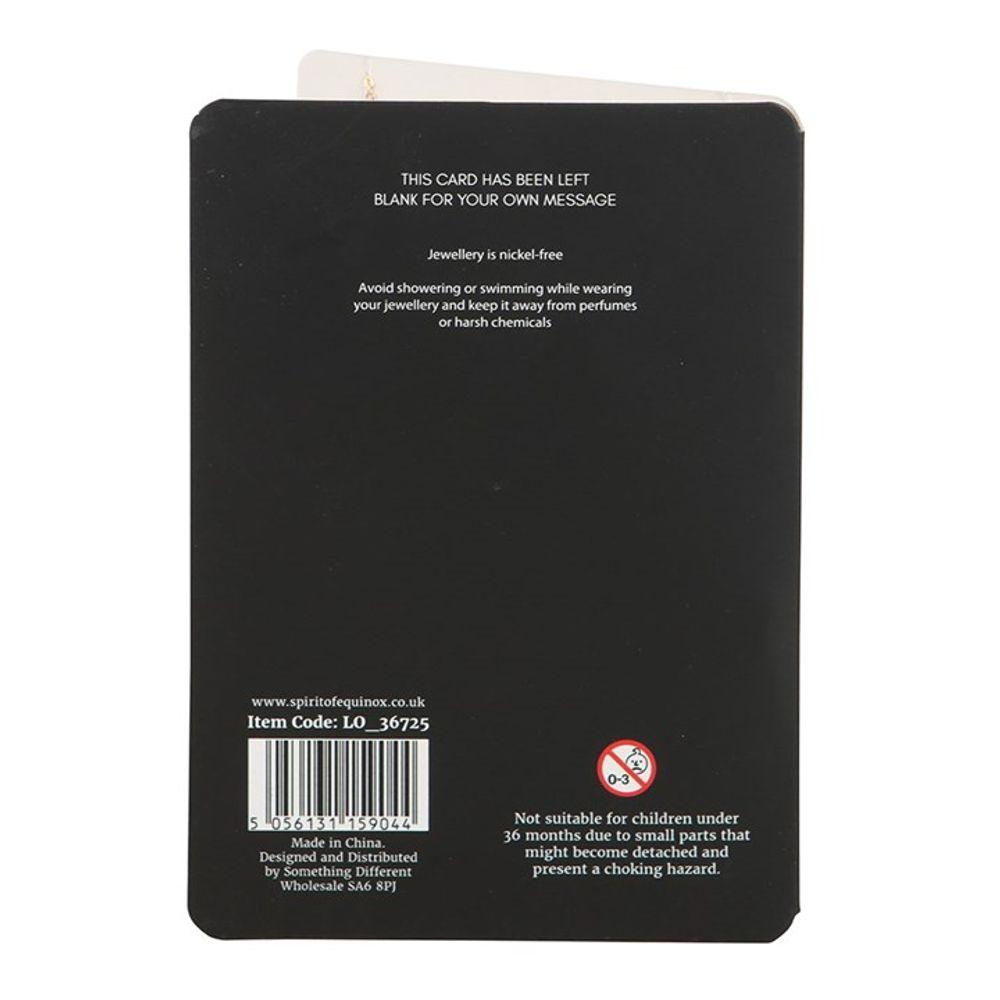 Presented on a matching greeting card for easy gifting. Includes envelope. Card left blank inside. Nickel-free.