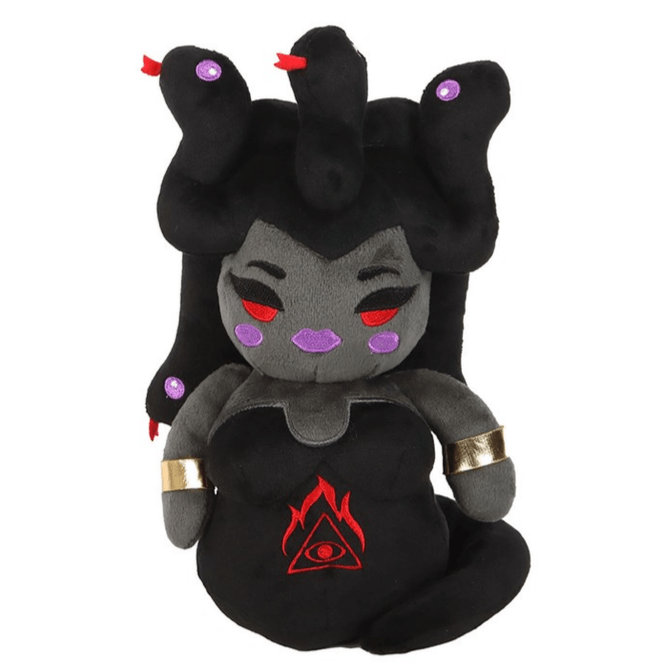 Meet your newest spooky companion: the Medusa plush! This iconic lady features a full head of twisted serpents and sultry red embroidered eyes, perfect for putting you under her spell.