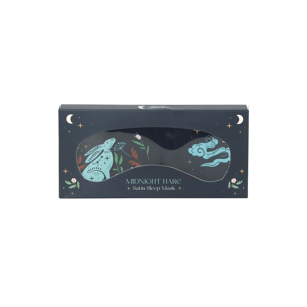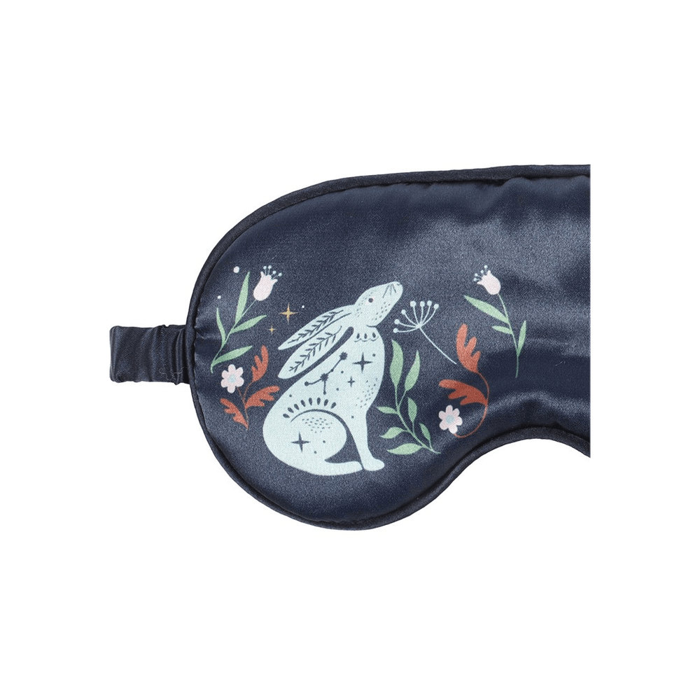 Get set for a peaceful night's sleep with this midnight hare satin sleep mask. Featuring a mystical hare underneath a starry night sky on a dark background to effectively block out light.