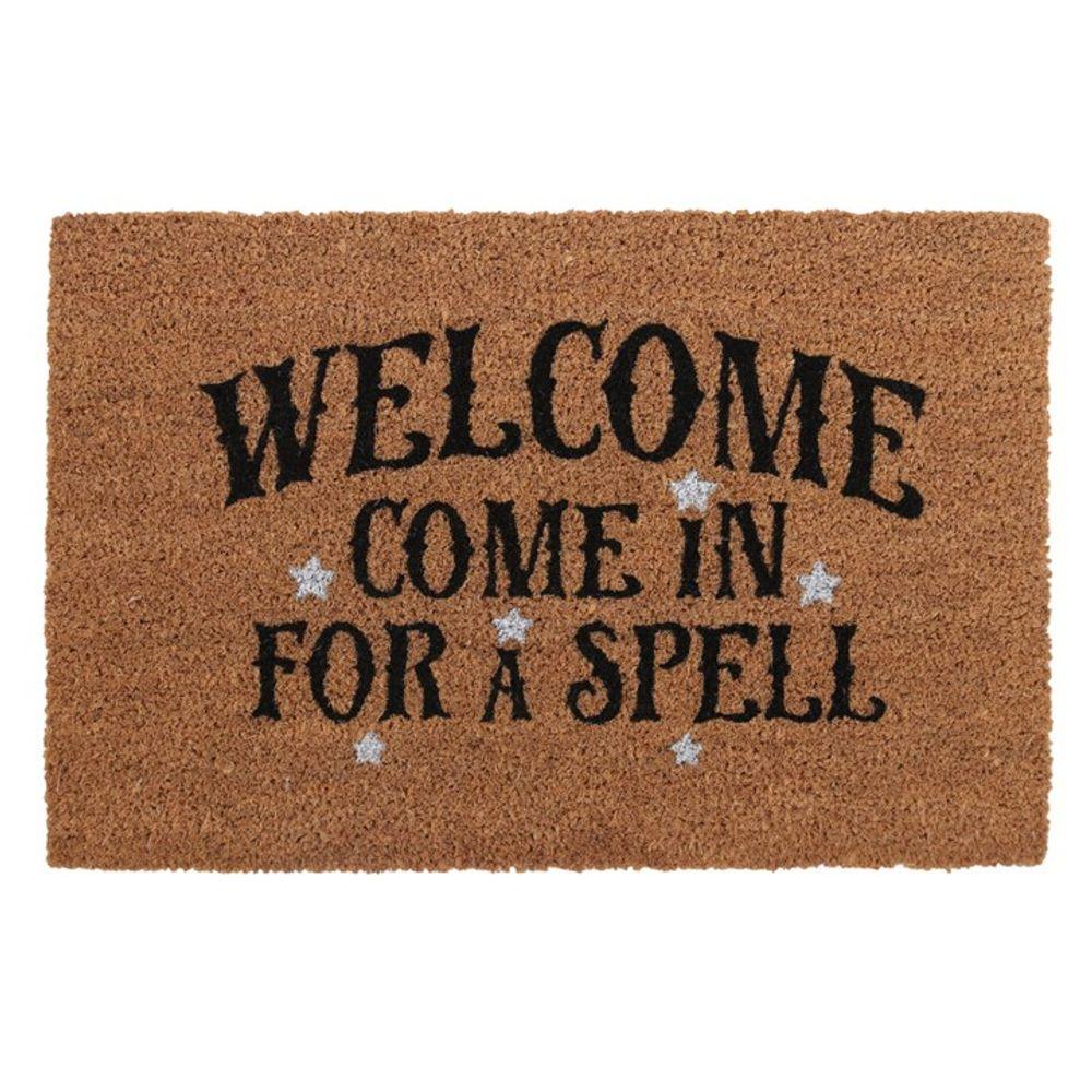 Witches and wizards of all ages will love being welcomed by this friendly witch doormat. Features 'Welcome Come in for a Spell' text that's perfect for any witch's home. Design may fade in extreme weather. Suggested for sheltered and indoor use only.