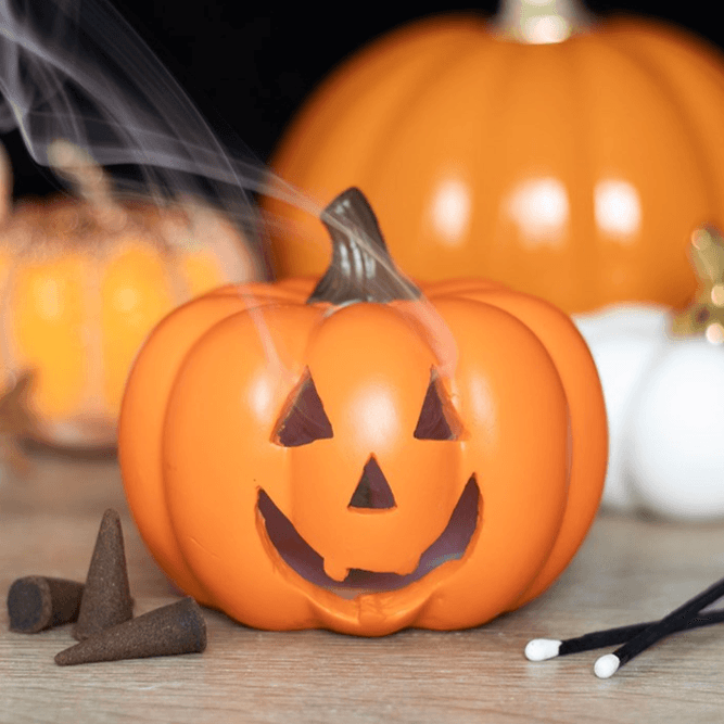 This jack-o'-lantern incense cone holder is he perfect piece for Halloween fragrances. Simply place a smoking incense cone in the holder and watch as smoke emerges from the pumpkin's toothy grin.