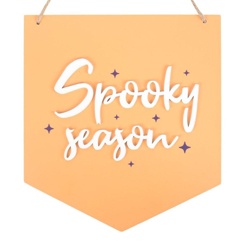 Decorate for Halloween with this 'Spooky Season' orange hanging sign. Designed in a pastel orange, it's perfect for more subtle styling for the season and can be dressed up by adding cobwebs or plastic spiders to the hanging string for more impact.
