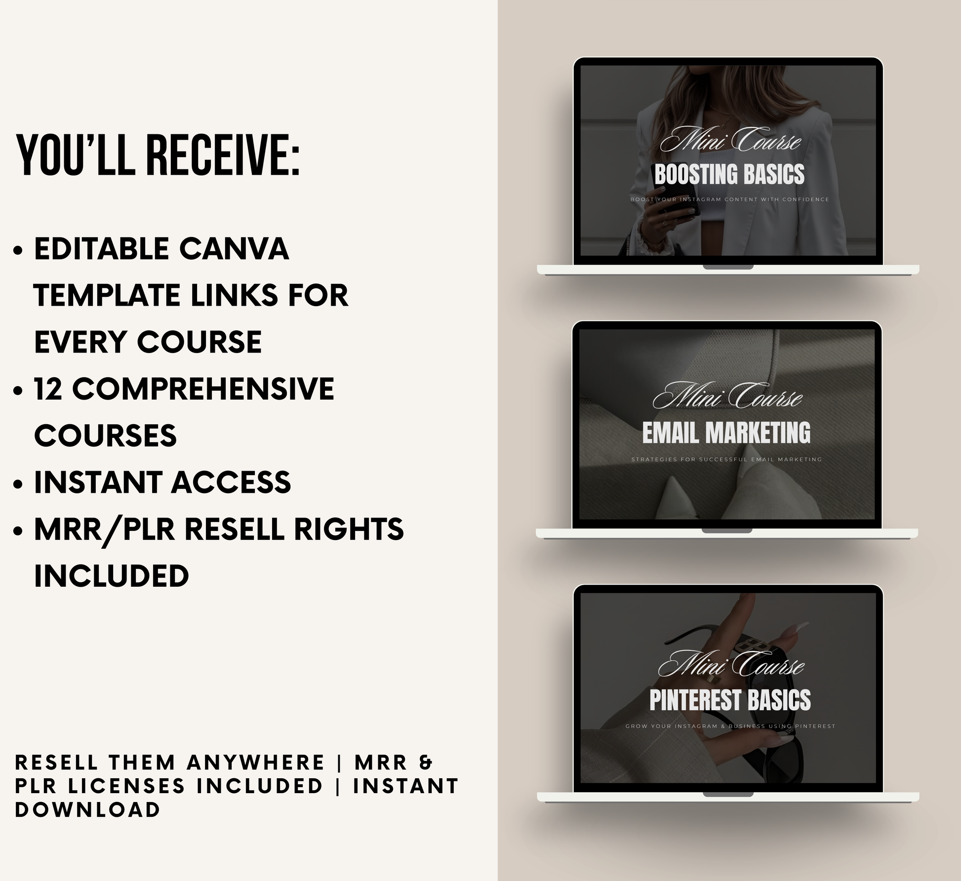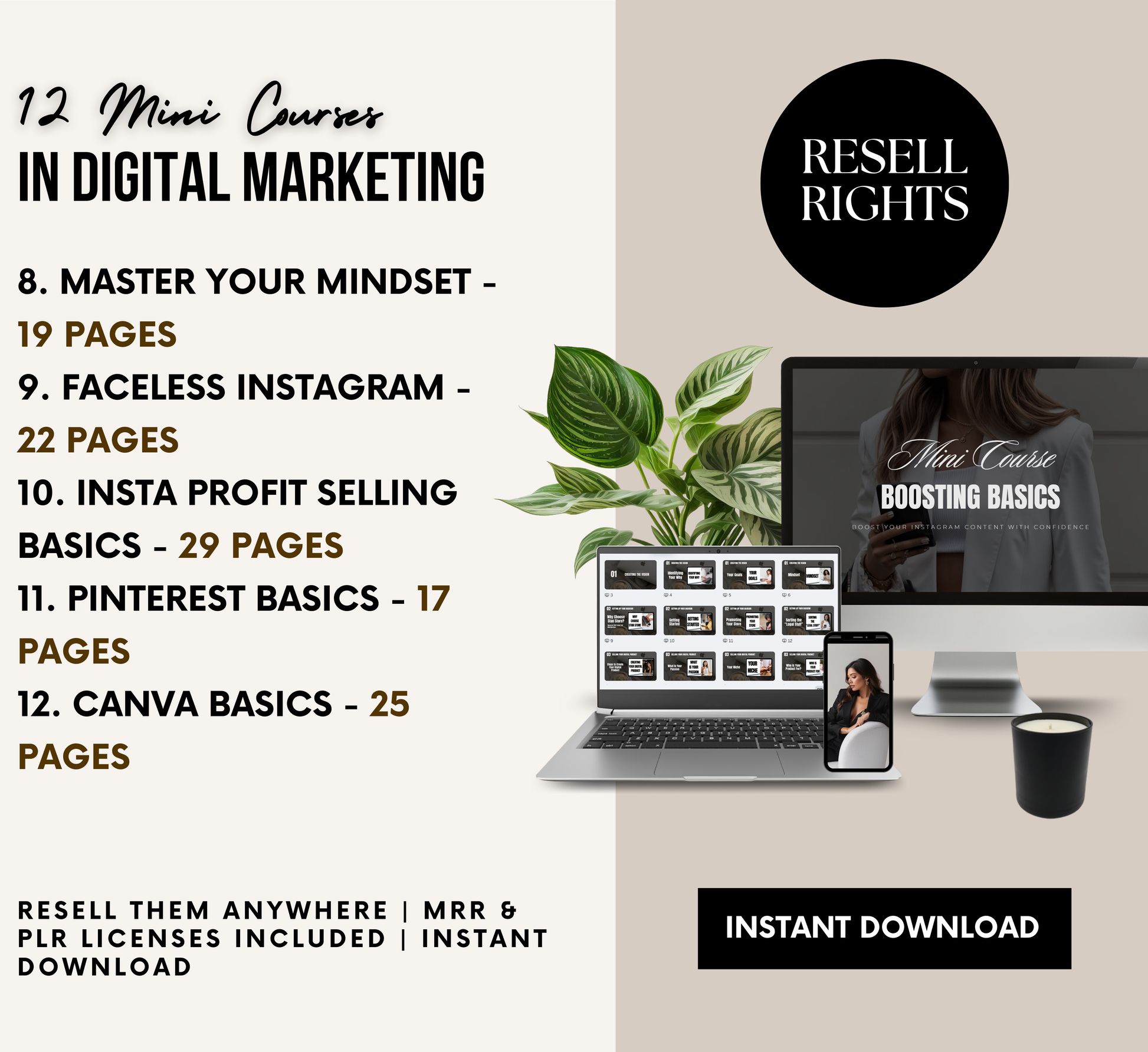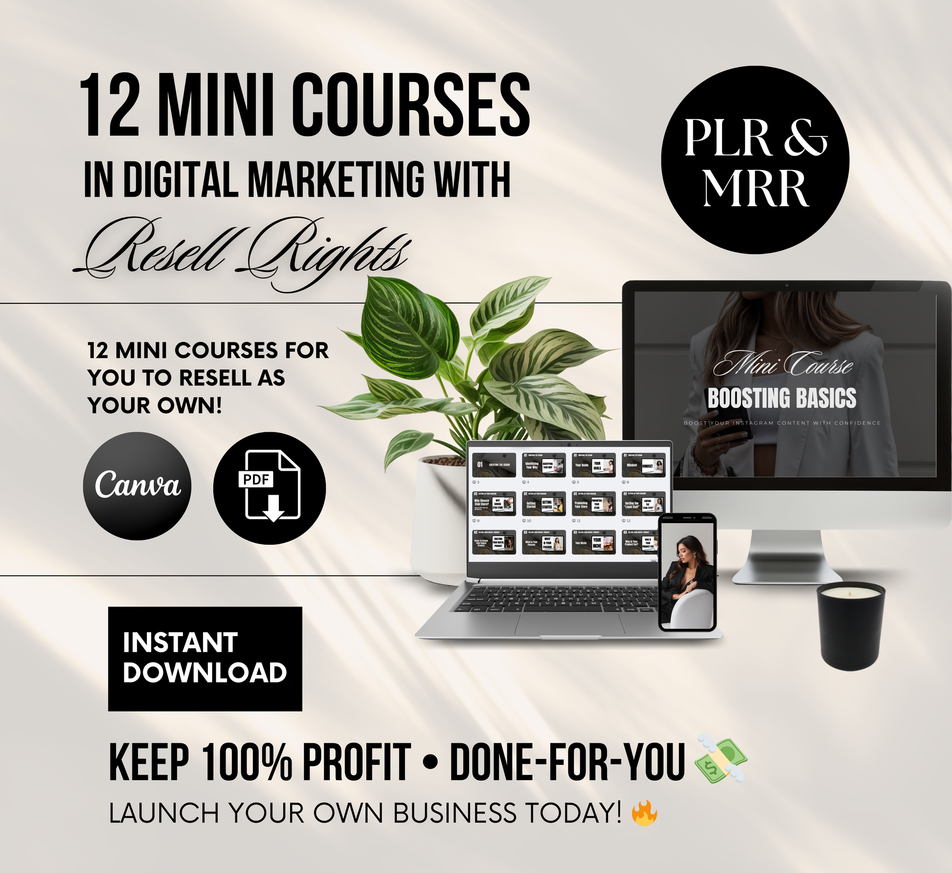 ✨ 12 Mini Digital Marketing Courses with Master Resell Rights + 🎁 30 Bonus Faceless Reels | Editable Canva Templates with PLR & MRR 💸