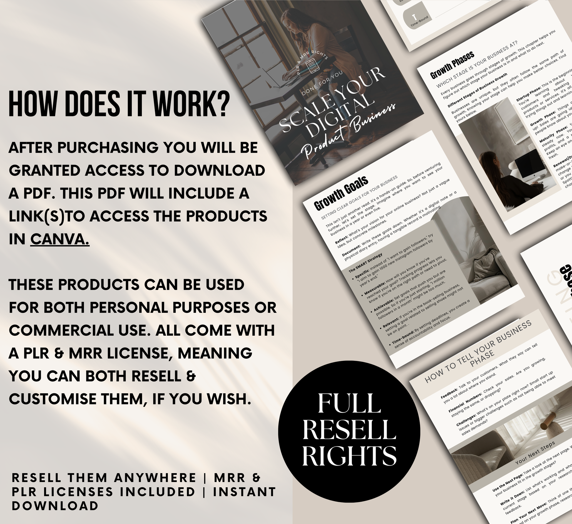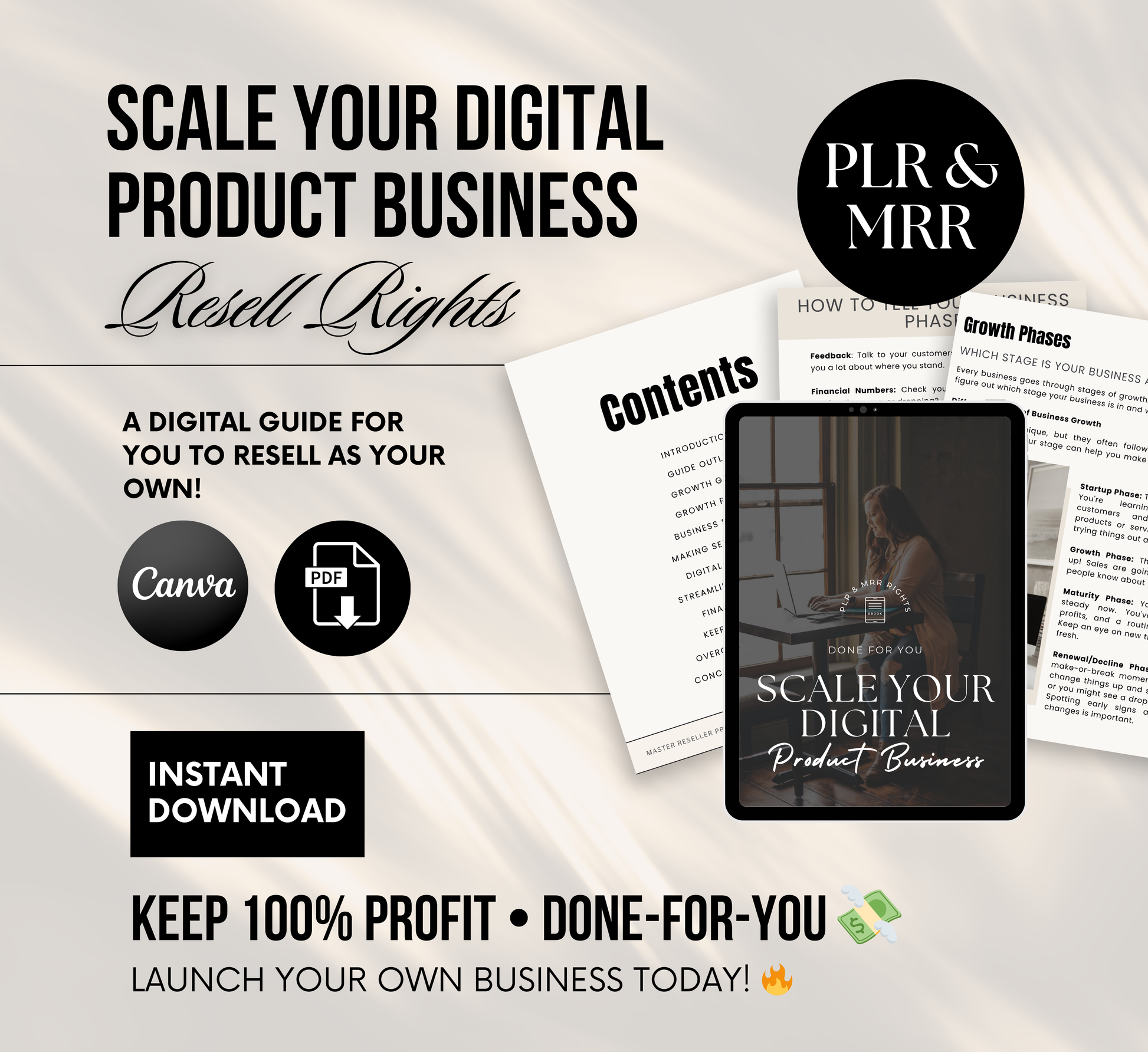โจ Scale Your Digital Product Business | 43-Page Editable Guide with PLR + MRR Resale Rights ๐ธ You can also pass on the PLR/MRR rights to your customers!
