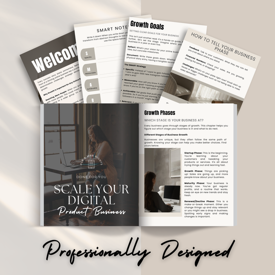 Ready to take your digital product business to the next level? This 43-page editable Canva guide gives you the roadmap to scaling with confidence โ covering everything from growth goals and strategy to streamlining processes, keeping customers, and overcoming challenges.