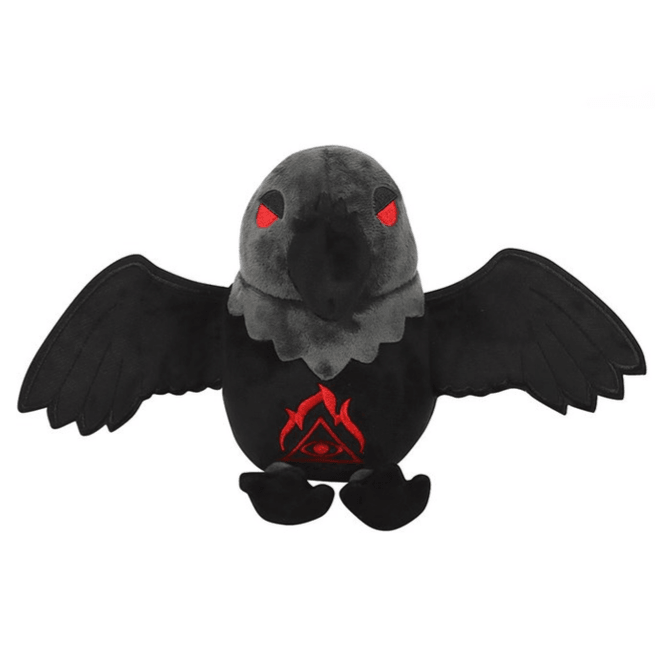 Meet your newest spooky companion: the Raven plush! This adorable bird features soft black wings and mesmerising red embroidered eyes, perfect for adding a touch of darkness to your collection.