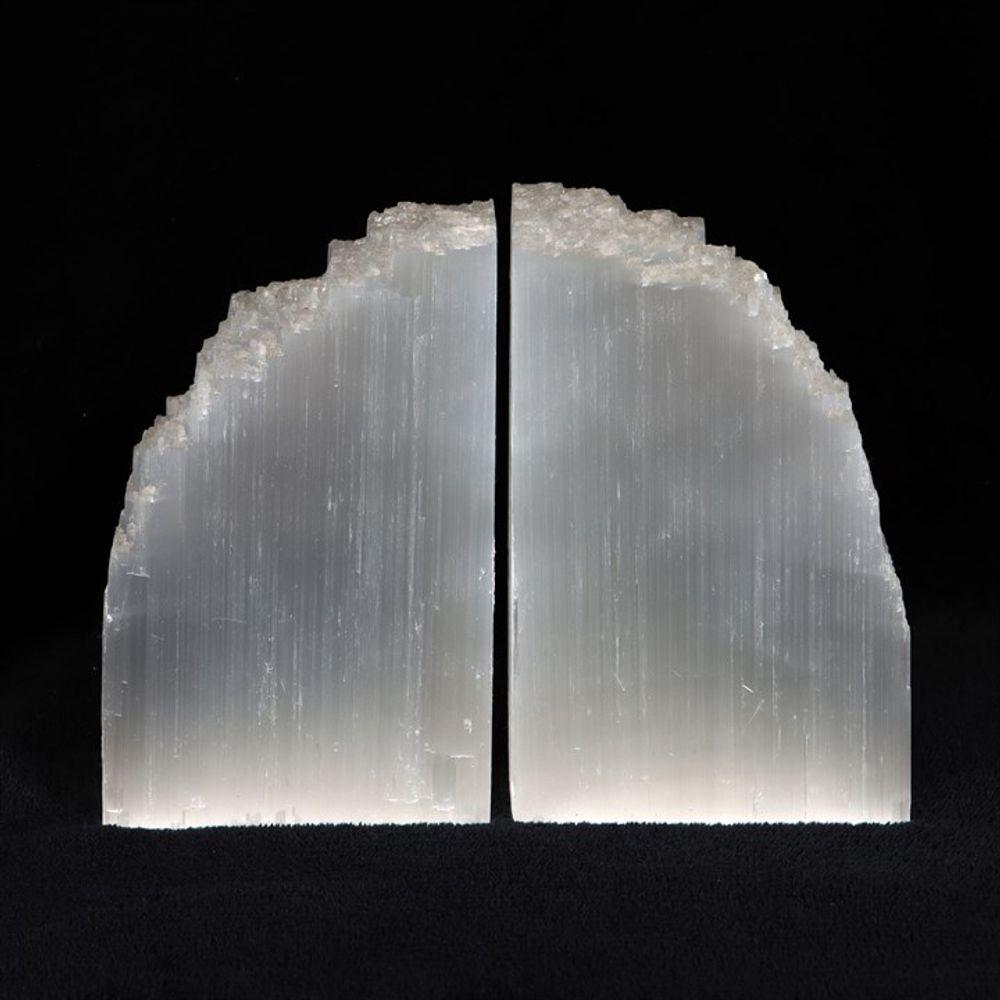 Add elegance and functionality to your home decor with this pair of stunning selenite bookends. Whether used for cleansing negative energies or simply bringing a touch of nature's beauty into the home, these bookends will be eye-catching additions to any bookshelf or side table. As each crystal is unique, size, shape and colour will vary.