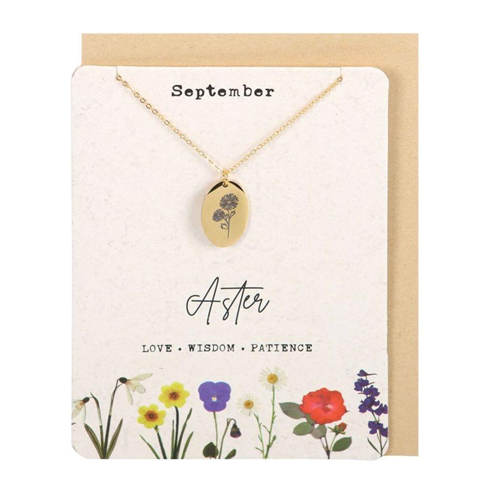 Symbolising love, wisdom and patience, the aster flower is a meaningful token for those born in the month of September. Includes engraved flower charm on a 22cm nickel-free chain. Card left blank inside. Envelope included.