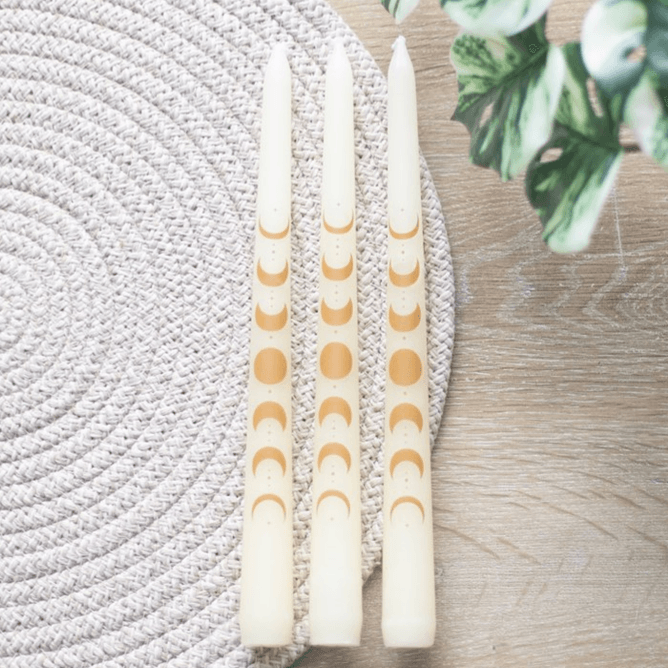 Set of 3 Off White Moon Phases Taper Dinner Candles