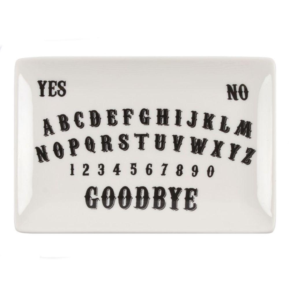 This unique dish can be used to hold small trinkets or coins and features a spirit board-inspired design.