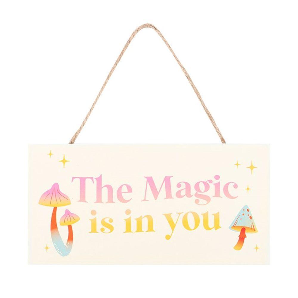 Use this sign as a groovy reminder to trust your gut. Features a vibrant mushroom design and "The magic is in you" text for a boost of motivation and positivity.