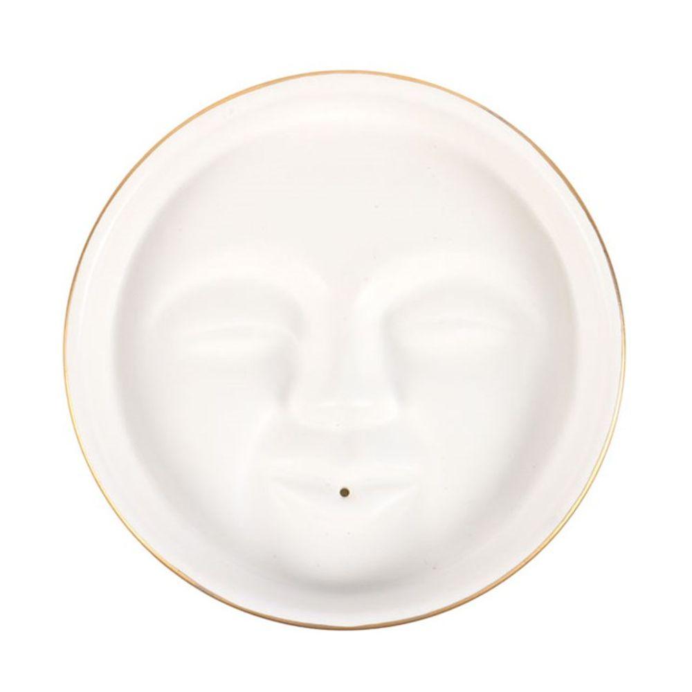 Relax and unwind with this ceramic incense holder shaped like a classic moon face. Simple and modern in design, this ceramic holder will look chic on a side table or nightstand while catching falling ash.