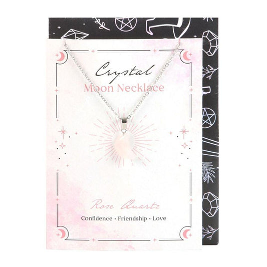 Rose Quartz Crystal Moon Necklace on Greeting Card